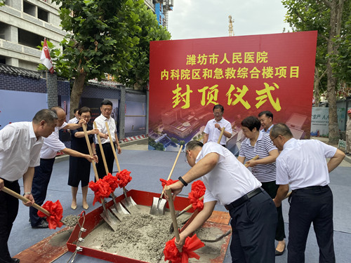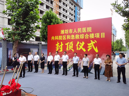 2023年7月25日上午10點(diǎn)18分,由集團(tuán)四建公司、一建公司分別總承包施工的濰坊市人民醫(yī)院內(nèi)科院區(qū)項(xiàng)目、急救綜合樓項(xiàng)目封頂儀式在內(nèi)科院區(qū)項(xiàng)目現(xiàn)場隆重舉行。