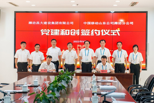 2023年9月13日下午,濰坊昌大建設(shè)集團(tuán)與中國(guó)移動(dòng)山東公司濰坊分公司“黨建和創(chuàng)”戰(zhàn)略合作協(xié)議簽約儀式在濰坊移動(dòng)總部辦公樓舉行。集團(tuán)公司黨委書(shū)記、董事長(zhǎng)徐鵬強(qiáng),濰坊移動(dòng)黨委書(shū)記、總經(jīng)理李亞平出席簽約儀式。集團(tuán)公司紀(jì)委書(shū)記穆乃杰與濰坊移動(dòng)黨委委員、工會(huì)主席、副總經(jīng)理李廣代表雙方在協(xié)議書(shū)上簽字。